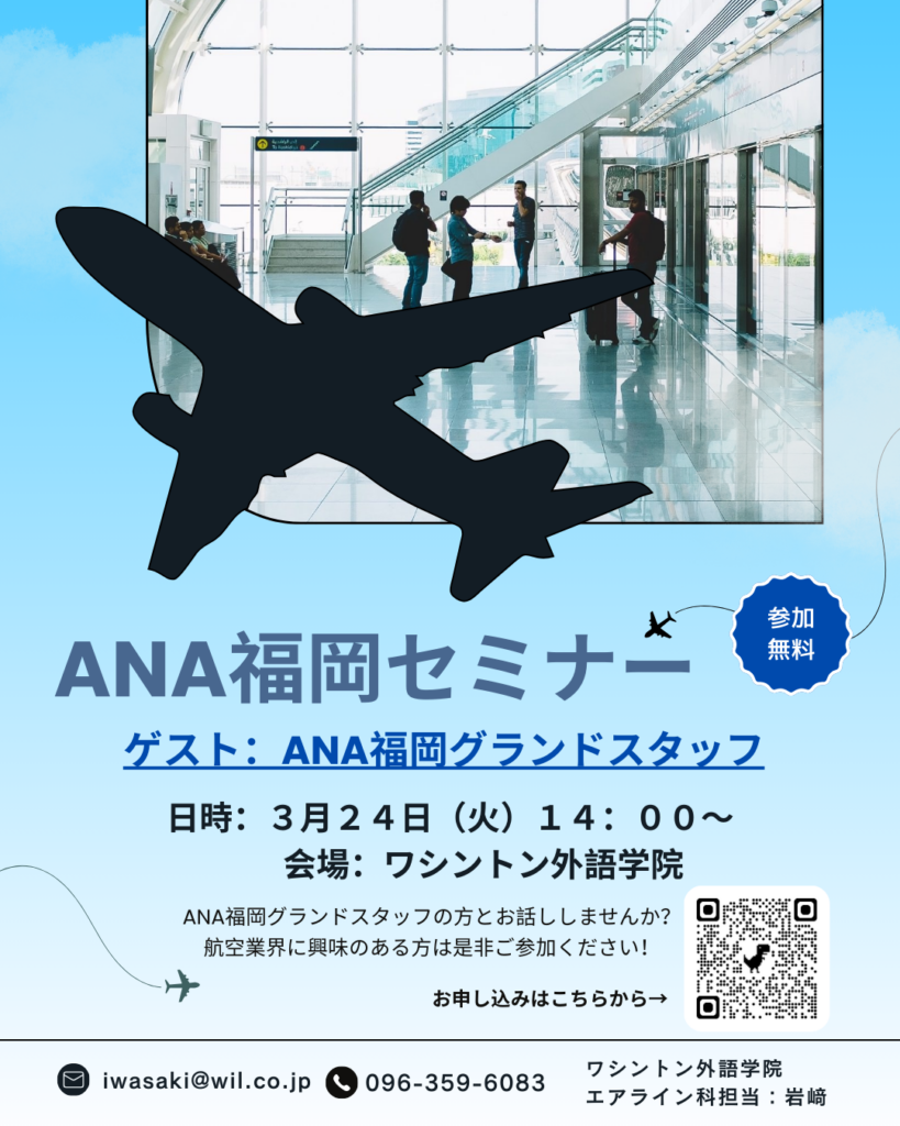 3月24日(火)ANA福岡のグランドスタッフをゲストに呼び、セミナーを開催します!