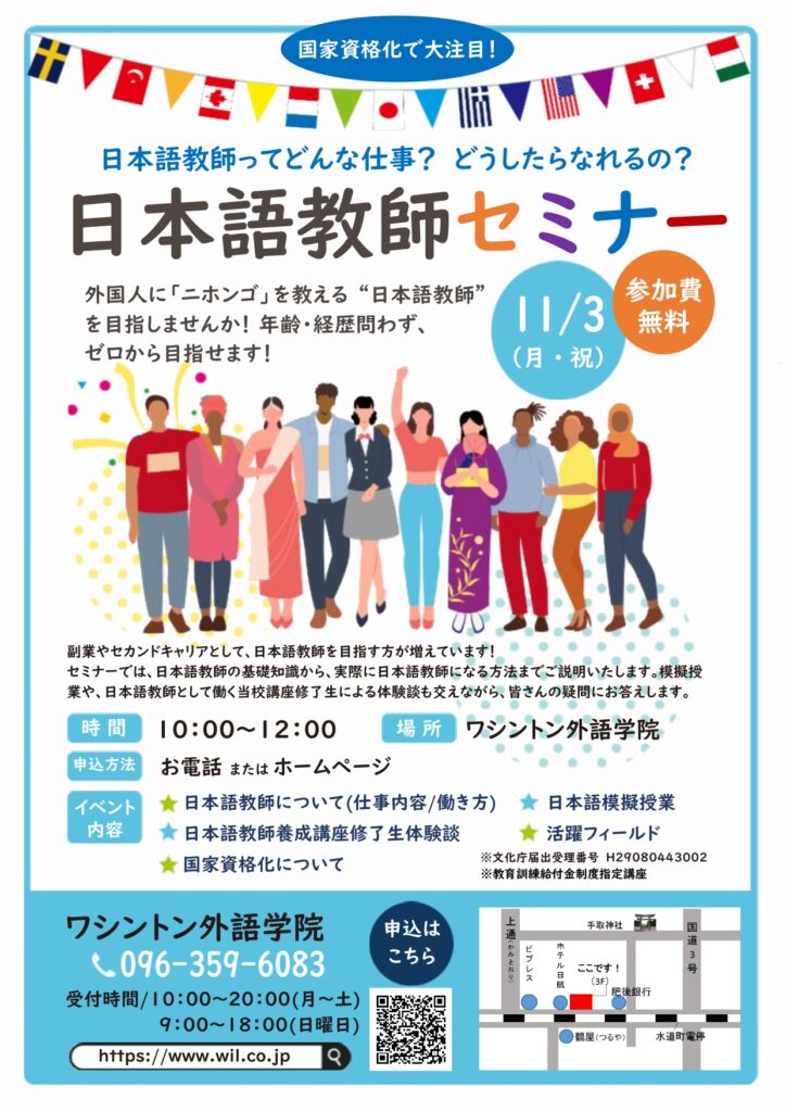 2025年11月9日(日)日本語教師養成講座クラス開講!【受講生受付中】|お知らせ|熊本・英会話スクールのワシントン外語学院