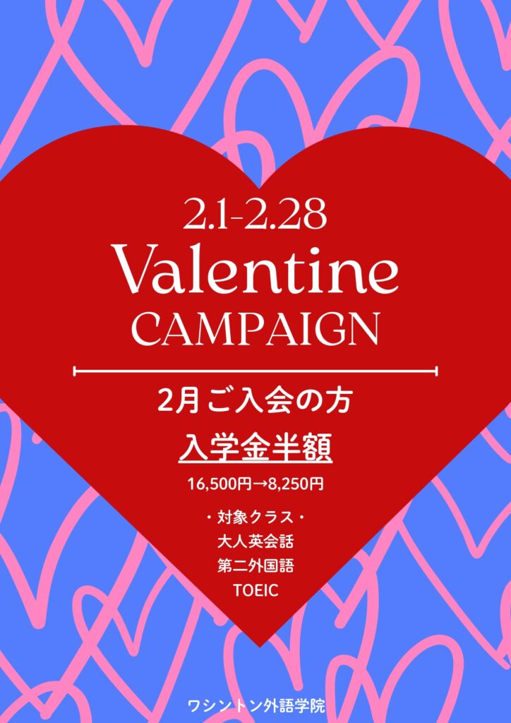 Hello everyone!❤❤ワシントン外語学院からヴァレンタインキャンペーンのお知らせです❤❤